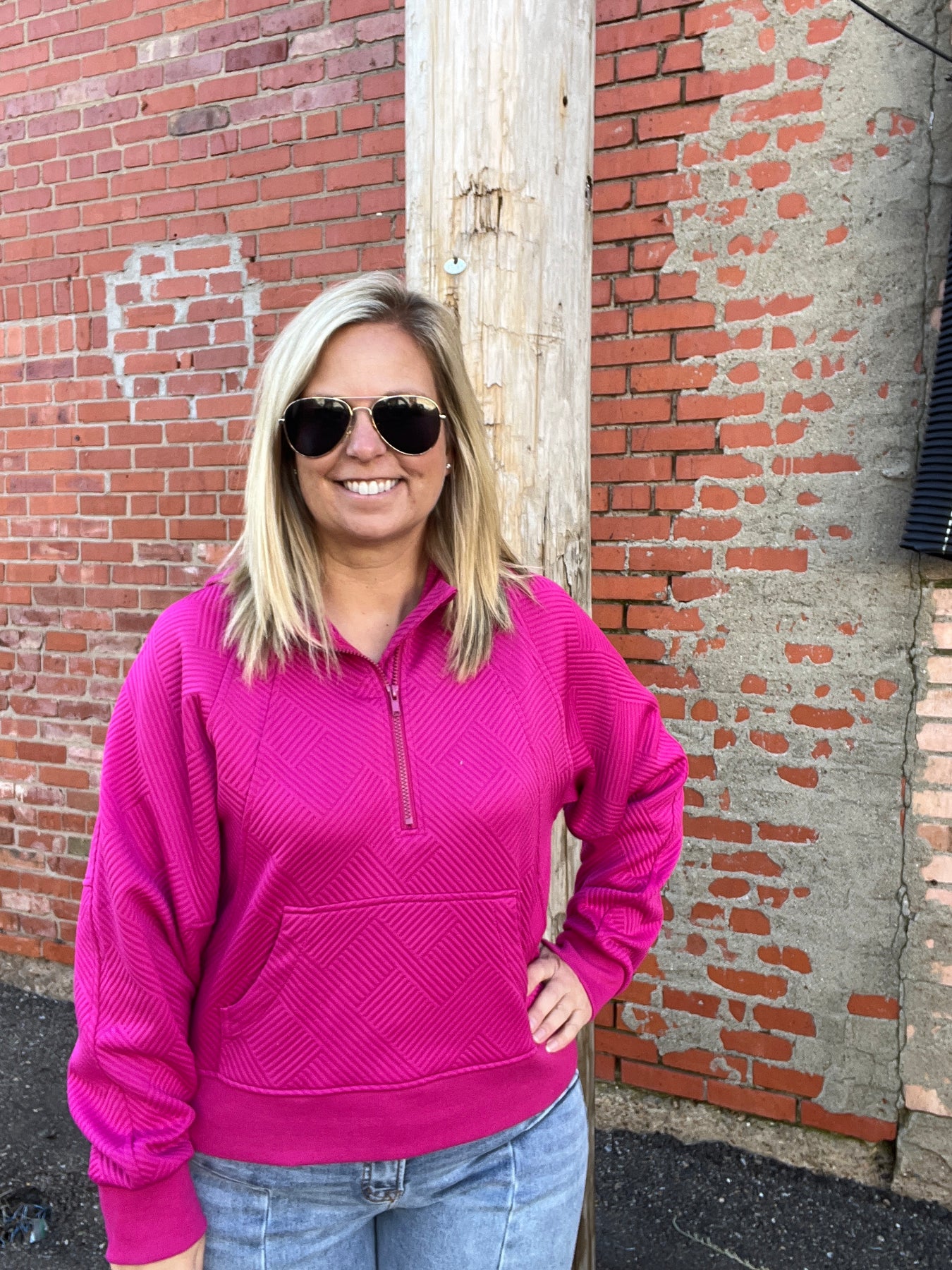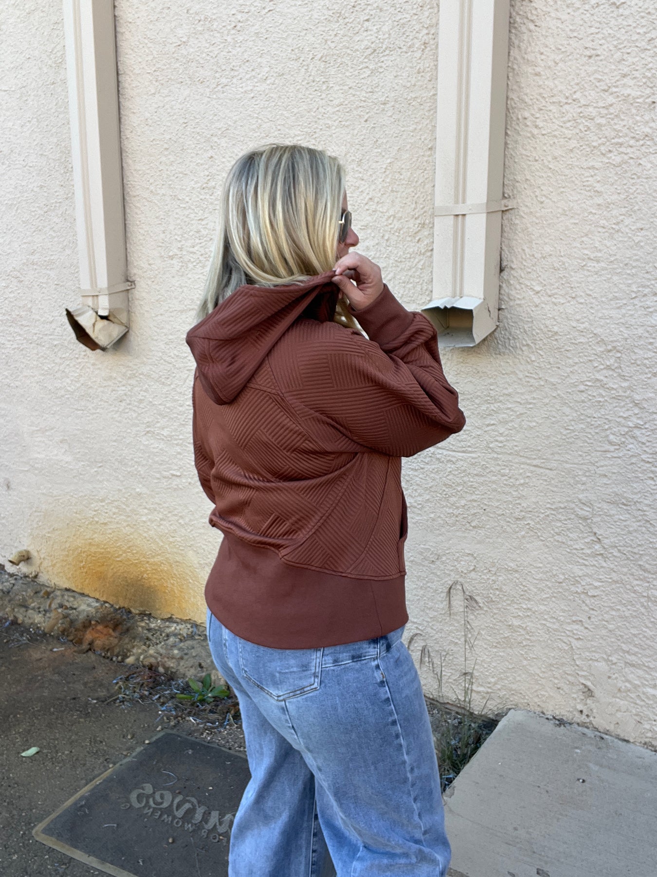 This textured hoodie is simple yet stylish.