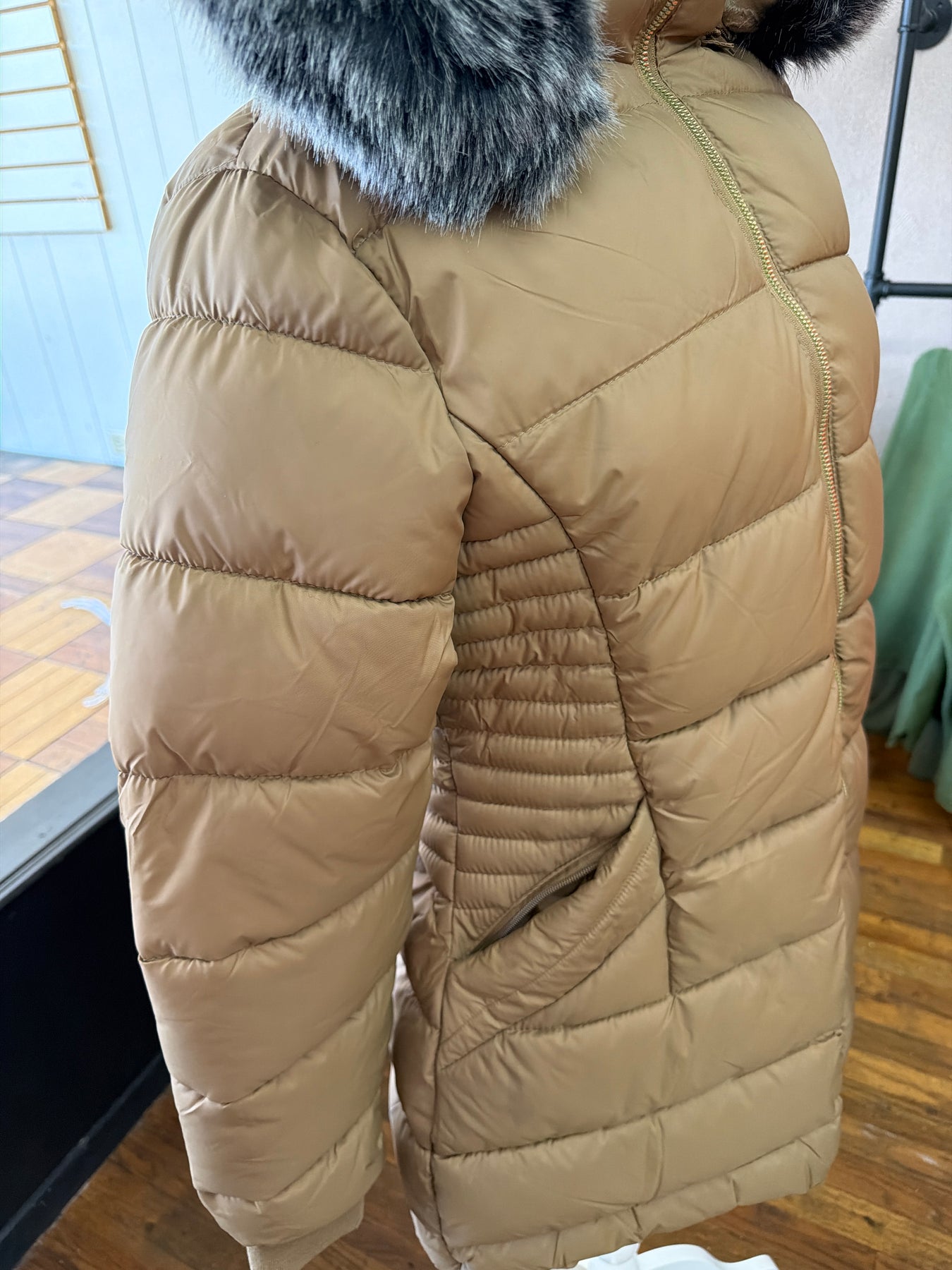 This tobacco heavy coat is beautiful. This will definitely keep you warm on those cold winter days.