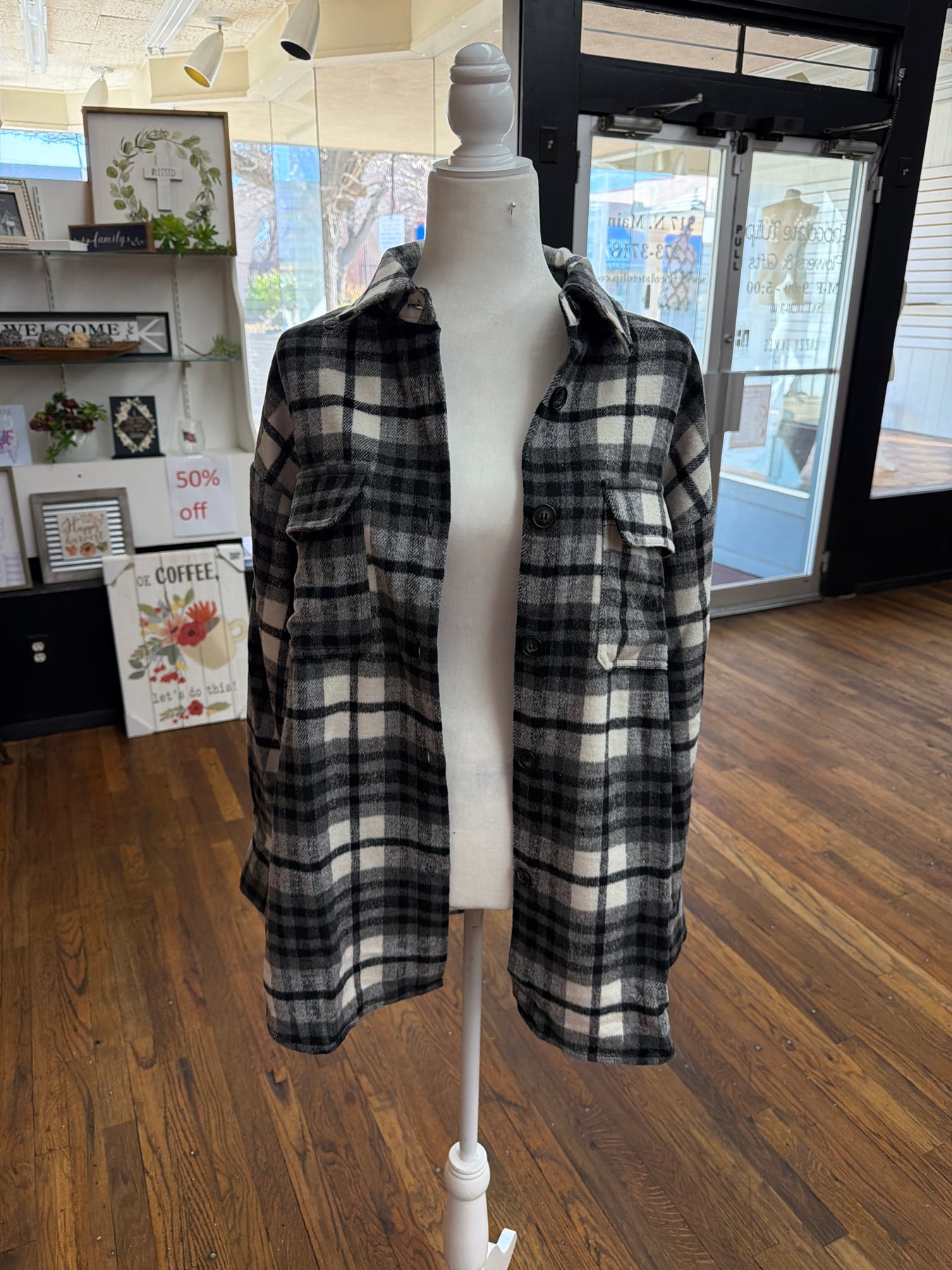 Elevate your wardrobe with the Black and White Shacket, combining the warmth of a jacket with the comfort of a shirt. Its versatile design pairs effortlessly with any outfit, making it perfect for layering on cooler days. Crafted for style and ease, this shacket adds a chic, modern edge to your everyday look while keeping you comfortably cozy.
