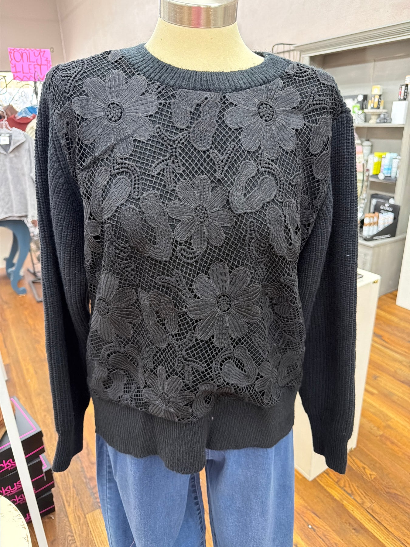 Black Flower Eyelet Sweater