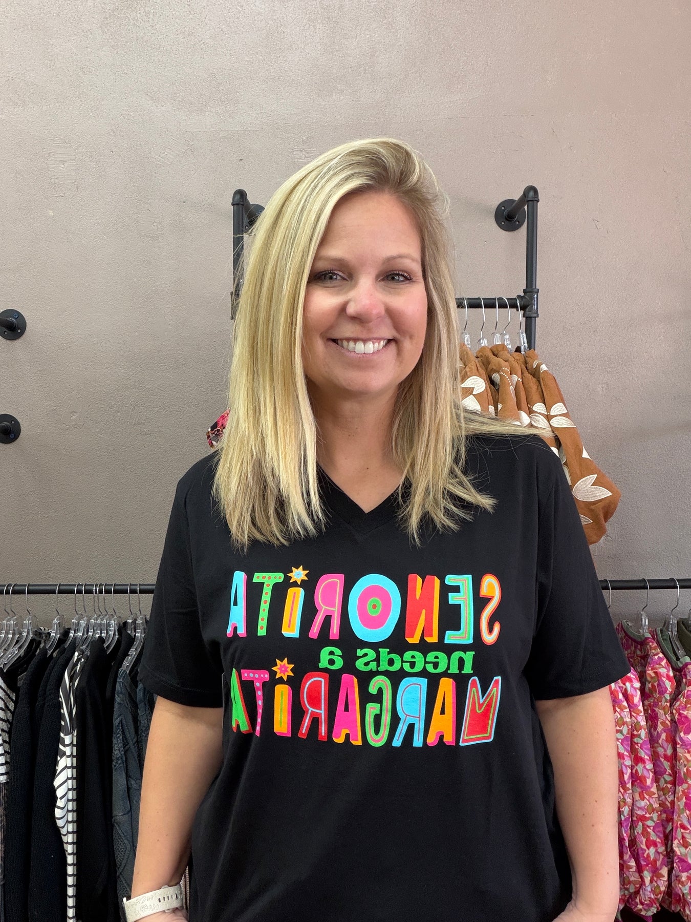 Fun and Sassy Graphic T-Shirt. V-neck black shirt.
